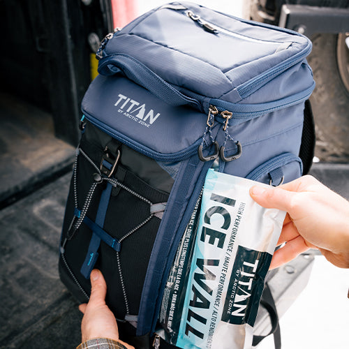 Want a backpack cooler that comes equipped with reusable ice packs? We've got you covered with the Titan 30 Can Ice Wall® Backpack Cooler. We also recommend checking out the Titan 24 Can Eco Backpack Cooler at Target and the Titan 26 Can Backpack Cooler at Costco.