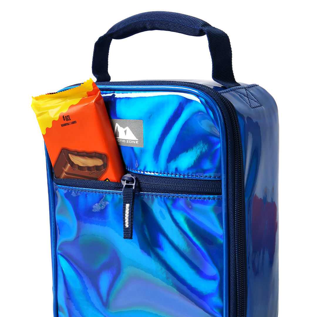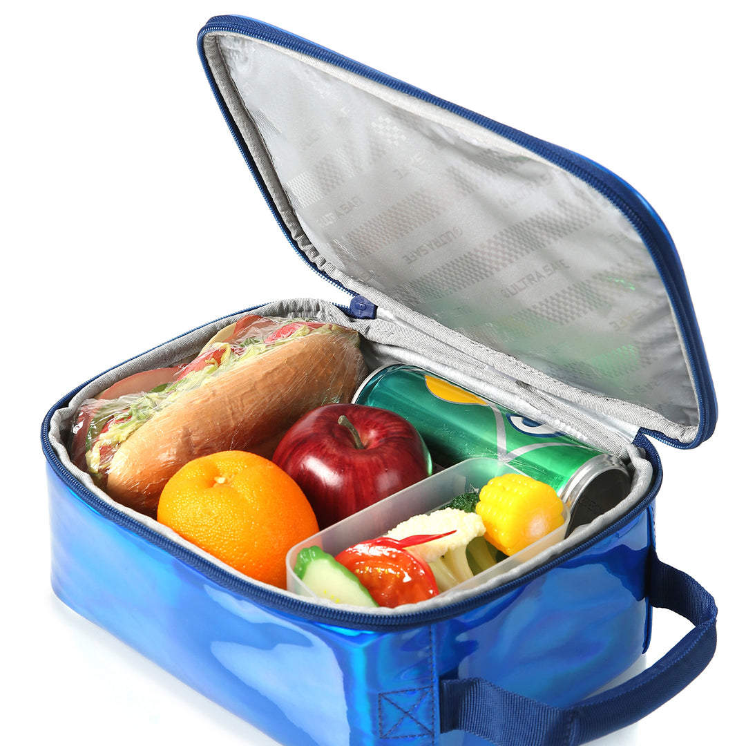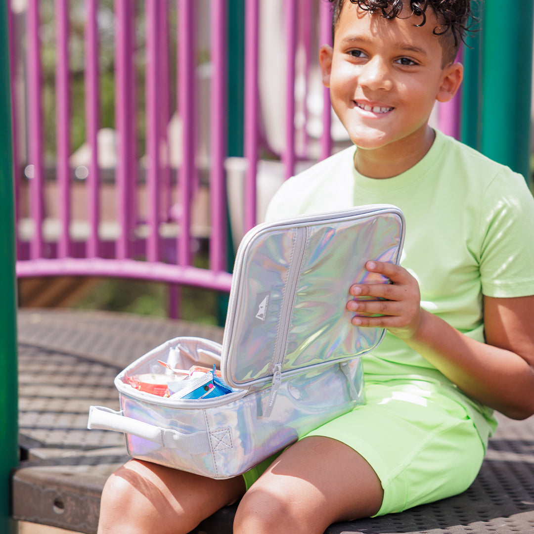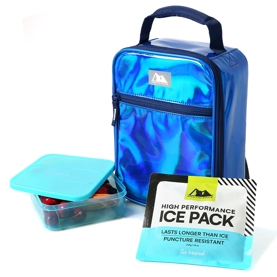 This chrome lunch box is as fun as it is functional. It includes a sandwich-sized food storage container and high performance ice pack for taking meals on the go. From school to summer camp and beyond, its fun iridescent exterior is sure to catch everyone’s eye.