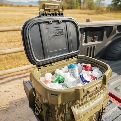 Titan PRO's new patented, High Performance Welded Cooler has a 36 Can Capacity and epic ice retention. It also includes a leak proof, HardBody® liner and a SmartShelf™ with bottle stabilizers that allow you to separate hard and soft contents. The HardBody® liner, SmartShelf™ and inner lid all have Microban® to help protect against bacterial odors and stains and make the liner, shelf and lid easier to clean.
